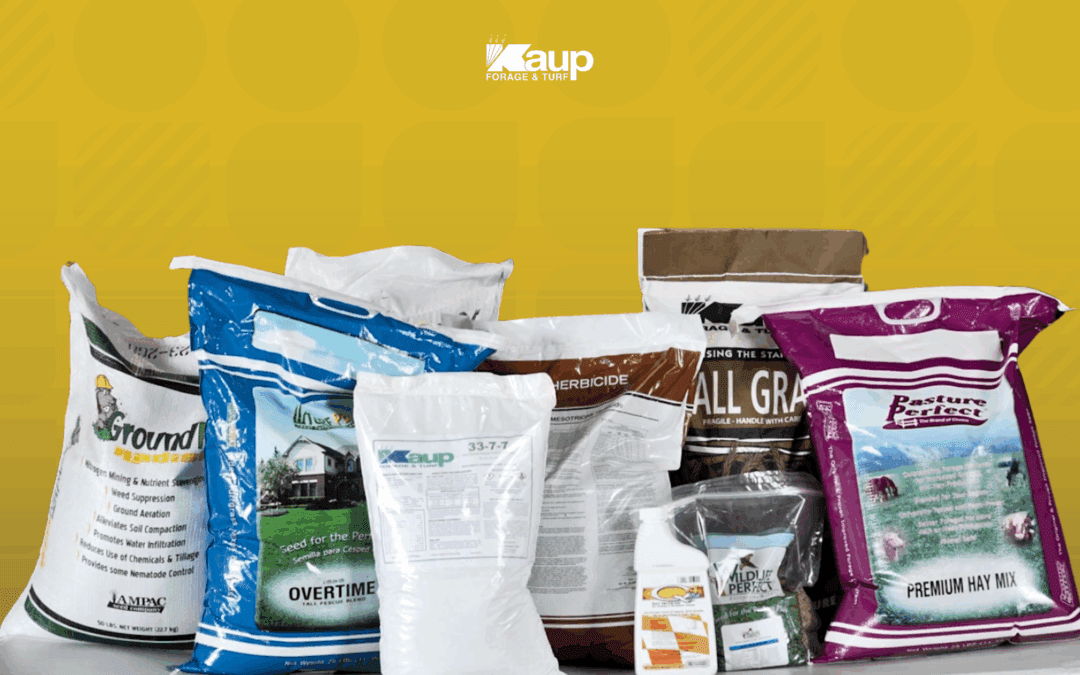 Kaup Forage & Turf offers custom mixes, FSA-approved mixes, and packaging options from 50-pound bags to 2,000-pound totes or full semi loads.
